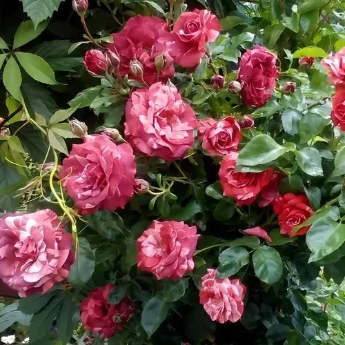 Цветение плетистой розы Брауни начинается в июне и продолжается волнами до октября, с пиком в середине лета. Бутоны раскрываются в крупные цветки диаметром 9-10 см, бокаловидной формы, собранные в кисти по 3-5 штук. Окраска уникальна: от красных тонов в бутонах к полосатому миксу вишневого, розового и коричневого, который не тускнеет под солнцем. Махровость густая — до 37 лепестков, аромат нежный, с фруктовыми акцентами, но не навязчивый, чтобы не привлекать лишних насекомых. Интенсивность цветения обильная, что делает саженцы розы Брауни отличным выбором для вертикального озеленения: арок, пергол, заборов или даже как солитер в групповых посадках.